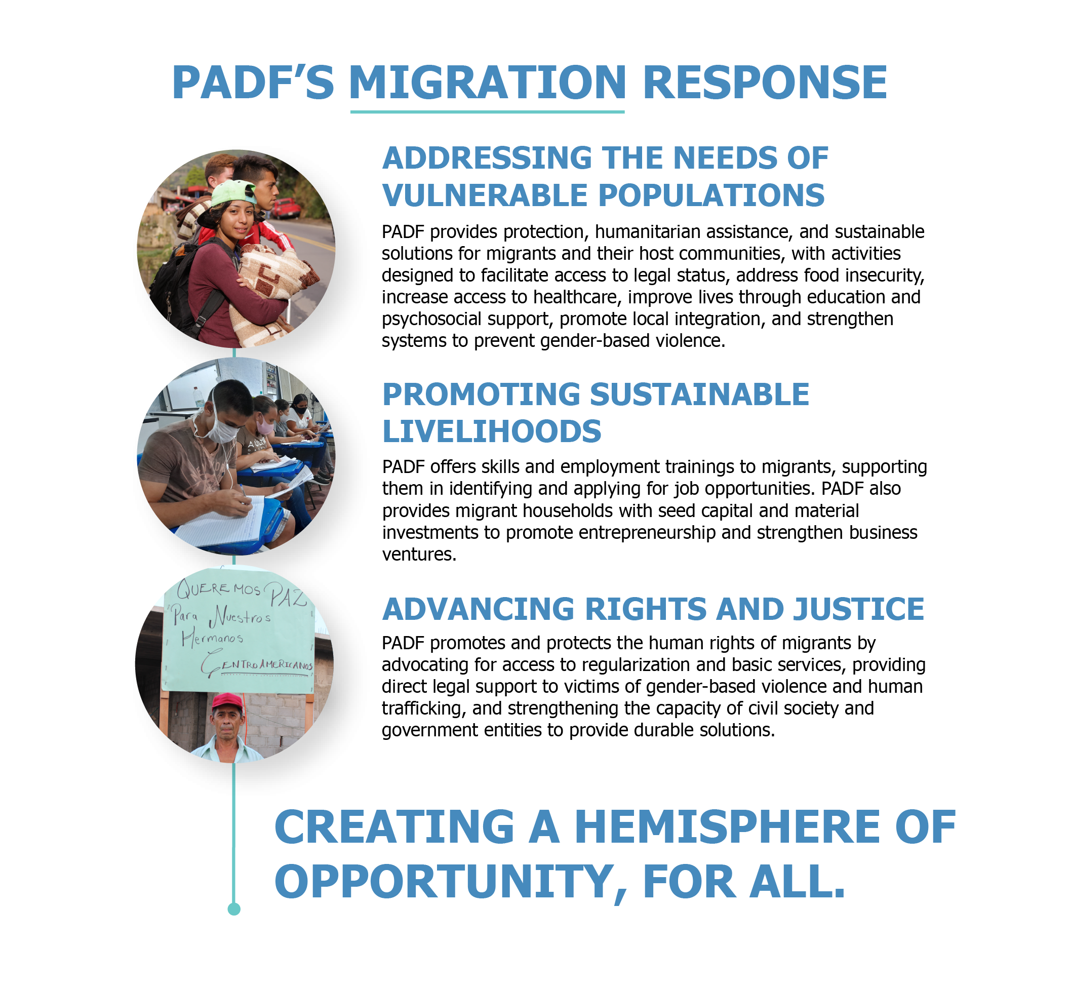 The Pan American Development Foundation (PADF) works throughout Latin America and the Caribbean to provide sustainable solutions for individuals who have left their homes in search of better, safer lives.