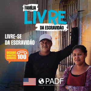 Com o tema Sou Livre da Escravidão, a Fundação Pan-Americana para o Desenvolvimento (PADF) lança uma campanha de conscientização para ajudar a combater o trabalho análogo à escravidão no Pará. O lançamento ocorre em Marabá, no dia 25 de janeiro de 2024, com uma coletiva de imprensa que terá a presença da Secretaria de Estado de Igualdade Racial e Direitos Humanos (SEIRDH), do Ministério Público do Trabalho e da Clínica de Combate ao Trabalho Escravo e do Instituto de Ciências Jurídicas da Universidade Federal do Pará (UFPA). Participam da coletiva, também, as organizações Comissão Pastoral da Terra (CPT) e SODIREITOS, com atuação na região. A campanha é financiada pelo Departamento de Estado dos Estados Unidos como parte das ações da PADF no Pará.