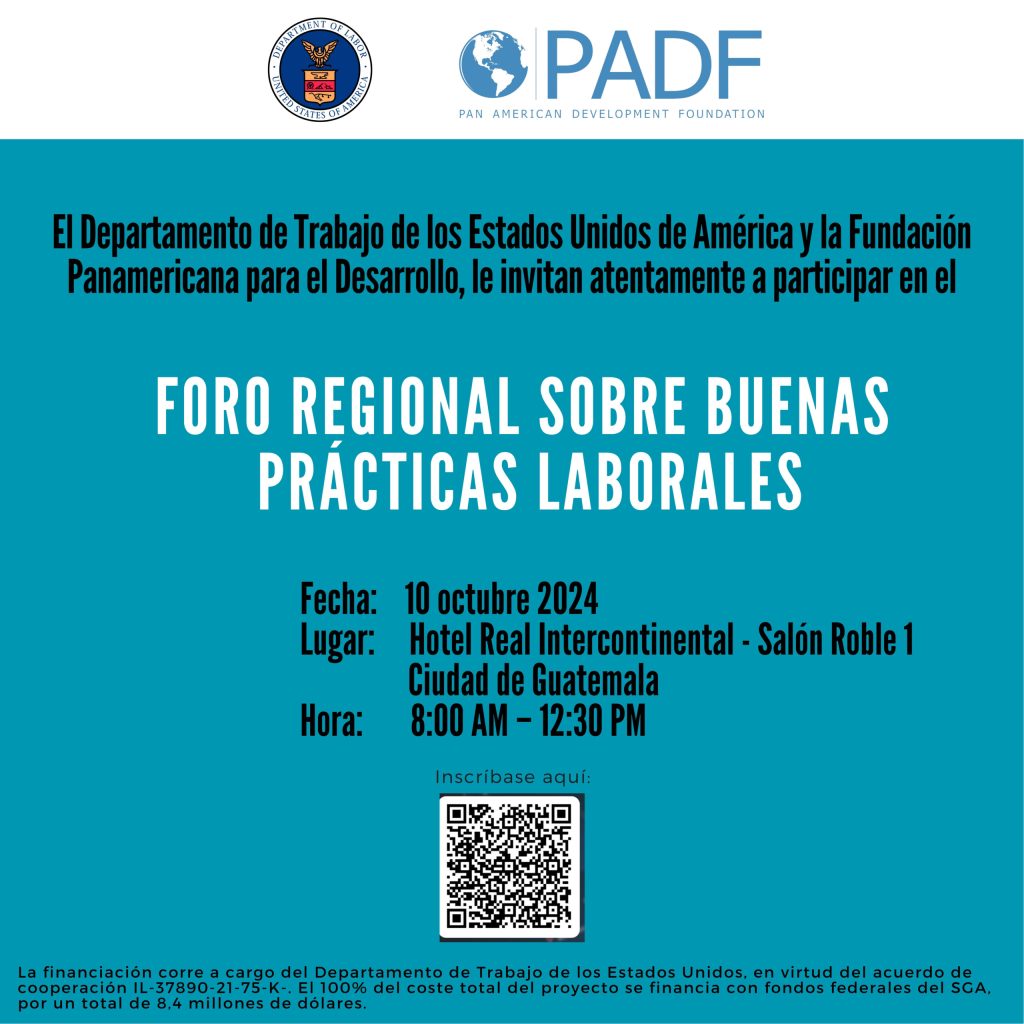 El Departamento de Trabajo de los Estados Unidos y la Fundación Panamericana para el Desarrollo le invitan amablemente a participar en el Foro Regional de Buenos Empleos. Únase a nosotros para discutir la importancia del papel de los gobiernos, las empresas y las personas trabajadoras en la generación y promoción de empleos de alta calidad para el desarrollo económico sostenible e inclusivo en Guatemala, El Salvador y Honduras. En la Cumbre participarán expertos del mundo académico, representantes del gobierno, del sector privado y de organizaciones de personas trabajadoras de Guatemala, Honduras y El Salvador.