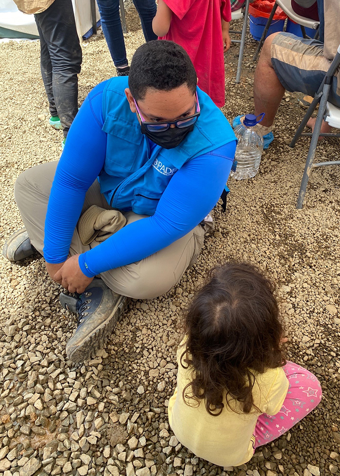 Before leaving the Migrant Reception Center in the Darien, Lisa said goodbye to her psychologist. Days later, the PADF team was along the northern border between Panama and Costa Rica for a health fair. To the psychologist's amazement, he saw Lisa there. It took her a few moments, but when she saw "PADF" on a blue vest, she recognized him and, with tears in her eyes, she hugged him thanking him for all the support he gave her, and for making sure she never felt alone.