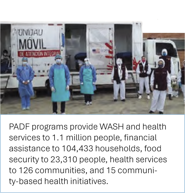 PADF saves lives by providing life-saving assistance during emergencies, promotes sustainable economic growth by creating opportunities for workforce development and private-sector investment, and advances security and rule of law by improving governance, combating organized crime, and preventing trafficking and violence across the Americas.