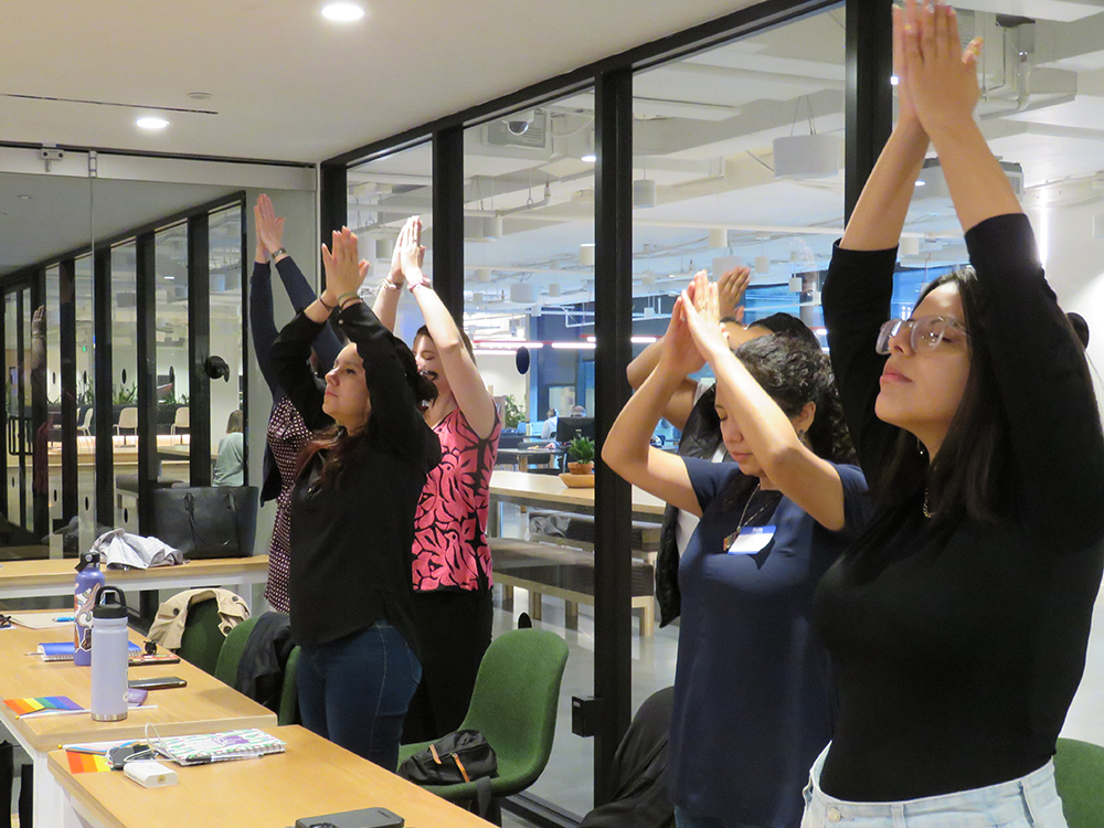 Clara Elena Cardona from Red Salud opened the meeting with a self-care exercise and invited participants to engage in breathing and movement exercises. Self-care encompasses a range of activities and practices that promote physical, mental, and emotional well-being. Engaging in self-care can help individuals recharge, reduce stress, and improve overall health.